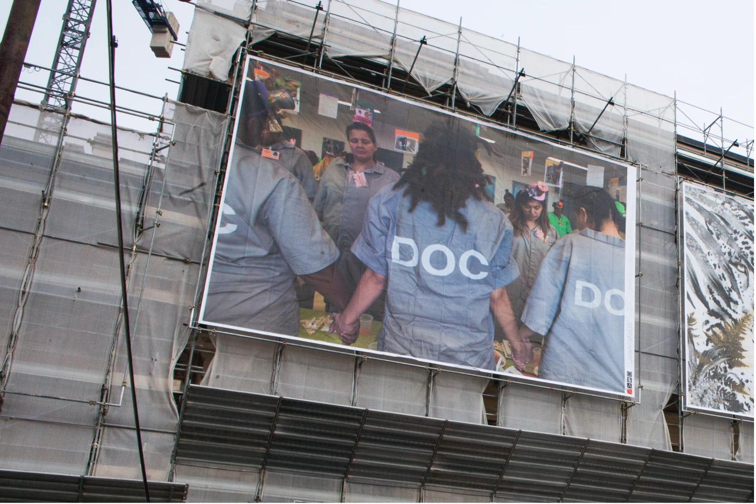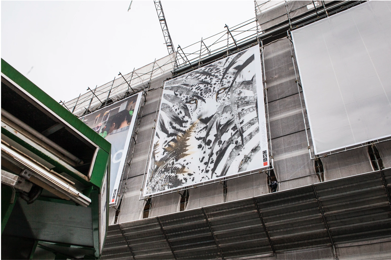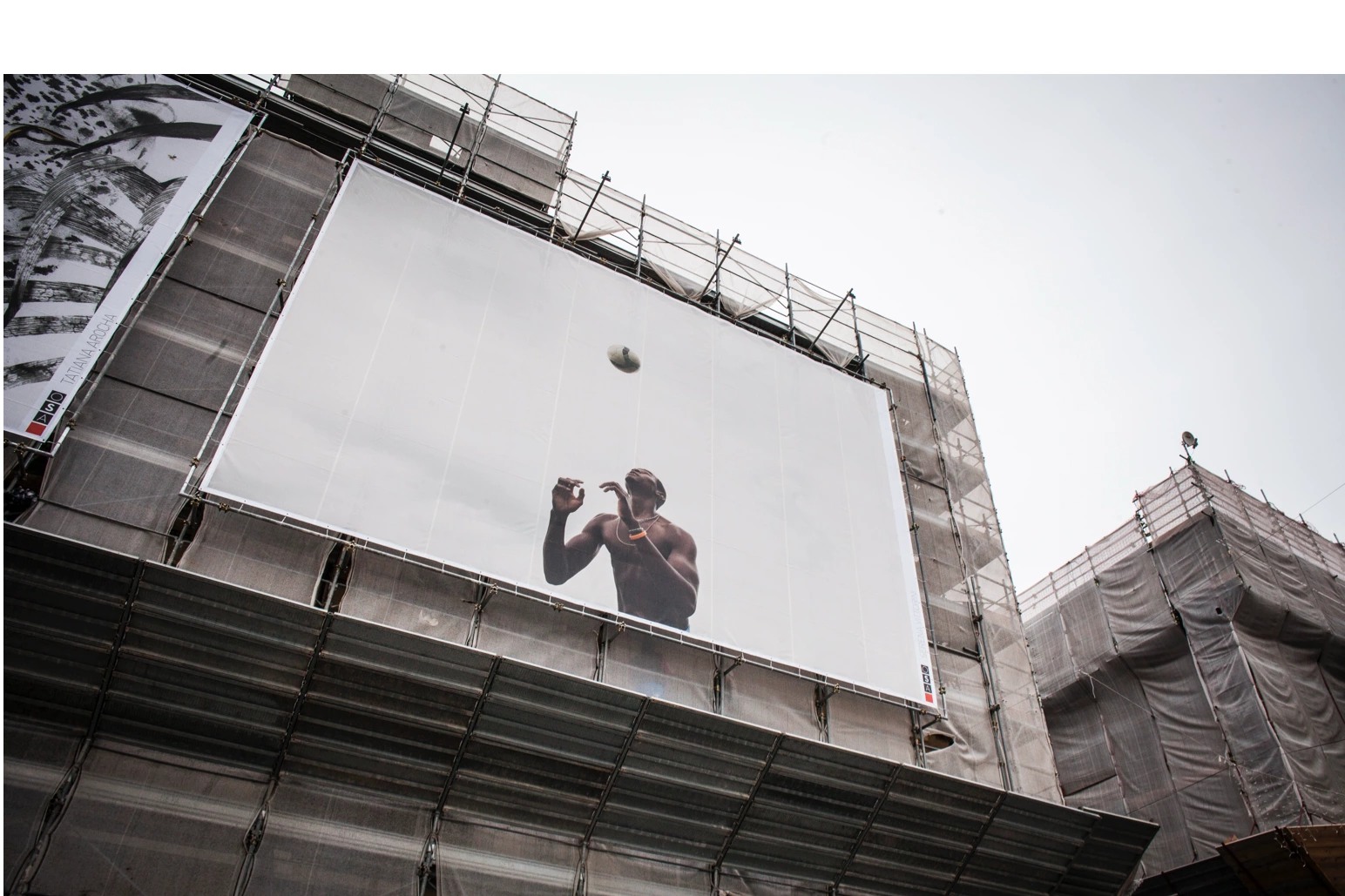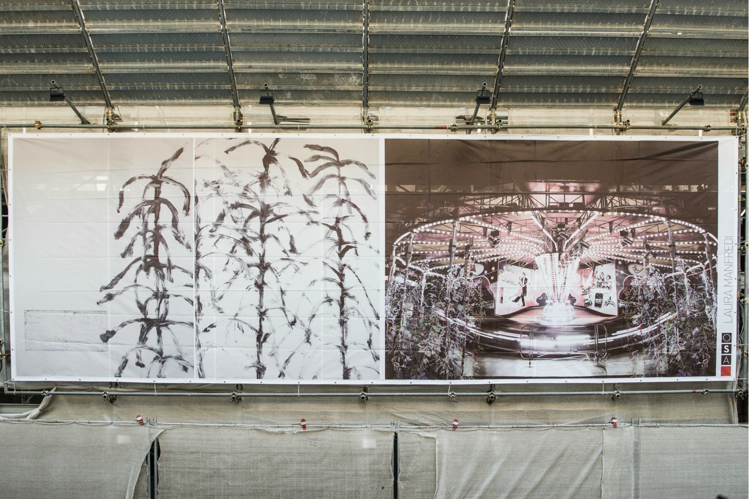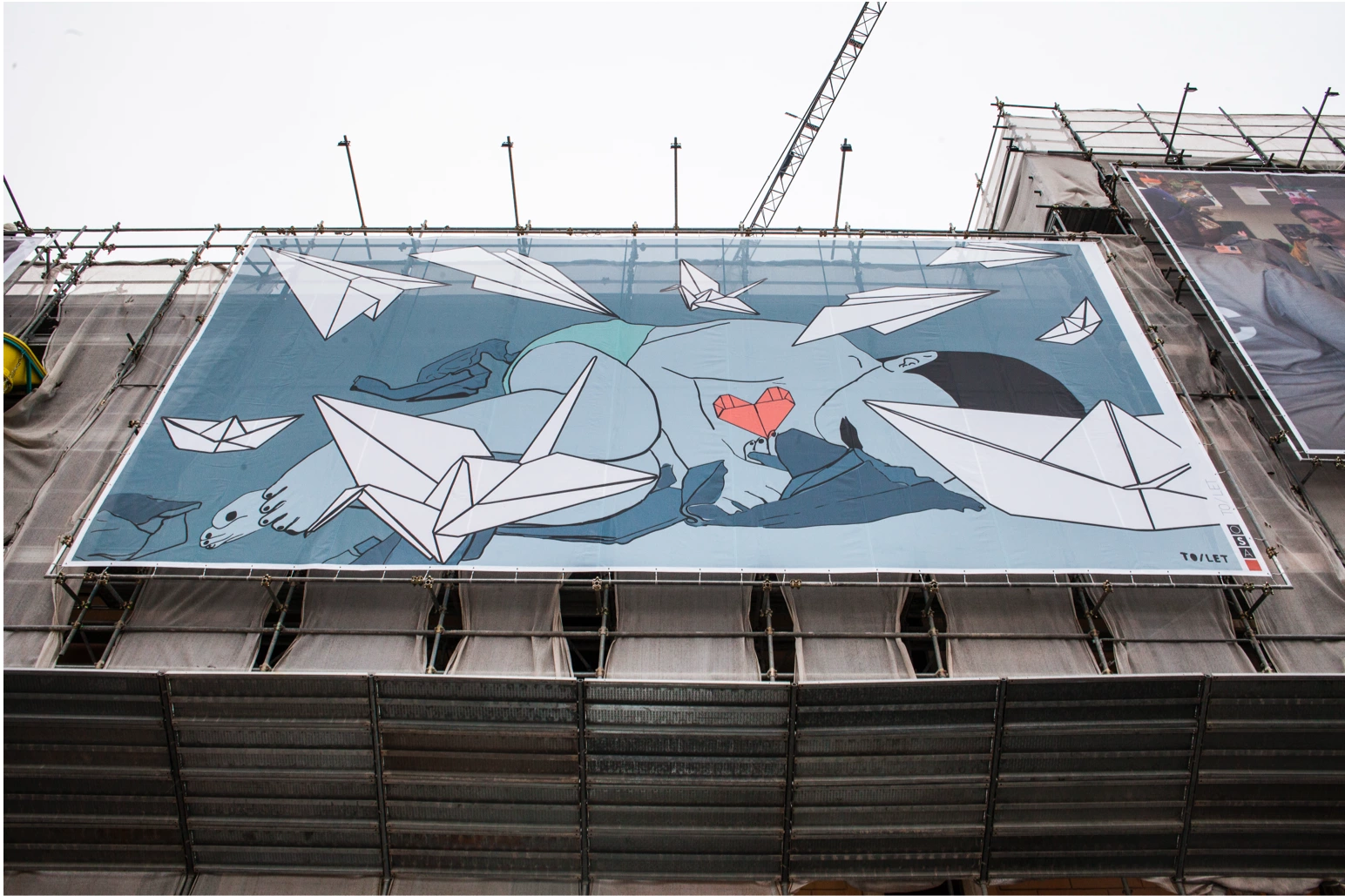 In collaboration with the American non-profit organization ArtBridge, the L’Aquila association had opened a call for artists residing in Italy and in New York City, which resulted in 350 submissions for a total of 1400 works. Throughout 2017, the winners’ works were printed on vinyl and installed on the scaffolding of the buildings under reconstruction, accompanying the rebirth of L’Aquila. Change! was made possible thanks to the contribution of the Gran Sasso Science Institute.