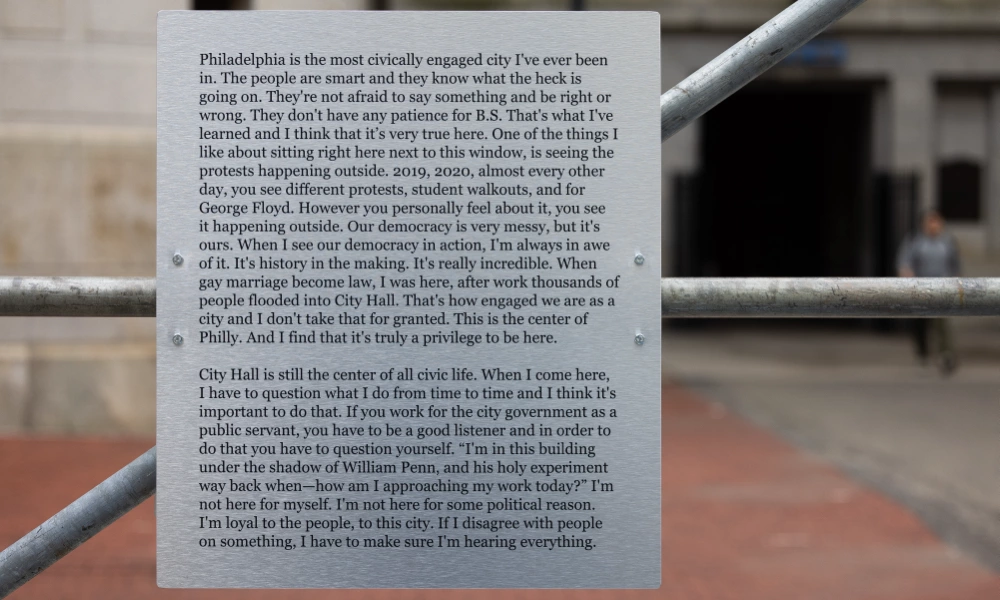 Civic Views, celebrating Philadelphia’s Municipal Workers through original photography was a temporary public art installation by Emilio Martínez Poppe. The original photos were shot by City employees through their office windows which showed their view of the city.
